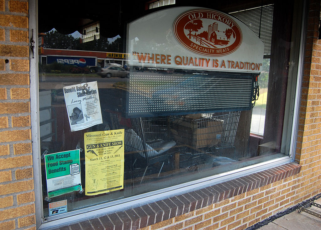 More telling is that the fliers in the window promote events that happened in March. If a Cape County business doesn’t have a Jacque Sue Waller poster up, then you KNOW they’re closed.