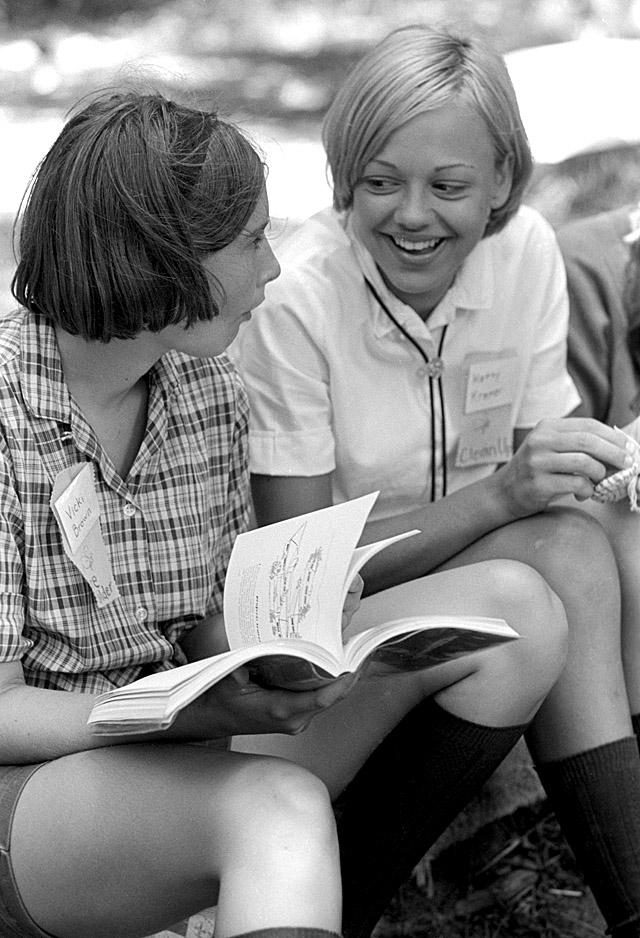 I posted photos of a group of Girl Scouts and Brownies touring The Missourian to celebrate the 100th birthday of the organization. I don’t think I’ll be around for the 200th birthday party, so I’d better get this one out early. Here’s the 1967 Girl Scout Day Camp held at The Seabaugh Farm. The following story ran on The Missourian’s Youth Page August 5, 1967. It had a three-photo combo of Scout Kim Williamson, above, daughter of Mr. and Mrs. Garnet Williamson, 1333 Howell, who “overcomes her shyness, gains enthusiasm and finally exuberantly sings out during a songfest at the Cadette and Junior Girl Scout Camp this week.” (The combo earned me a credit line and 15 bucks.)