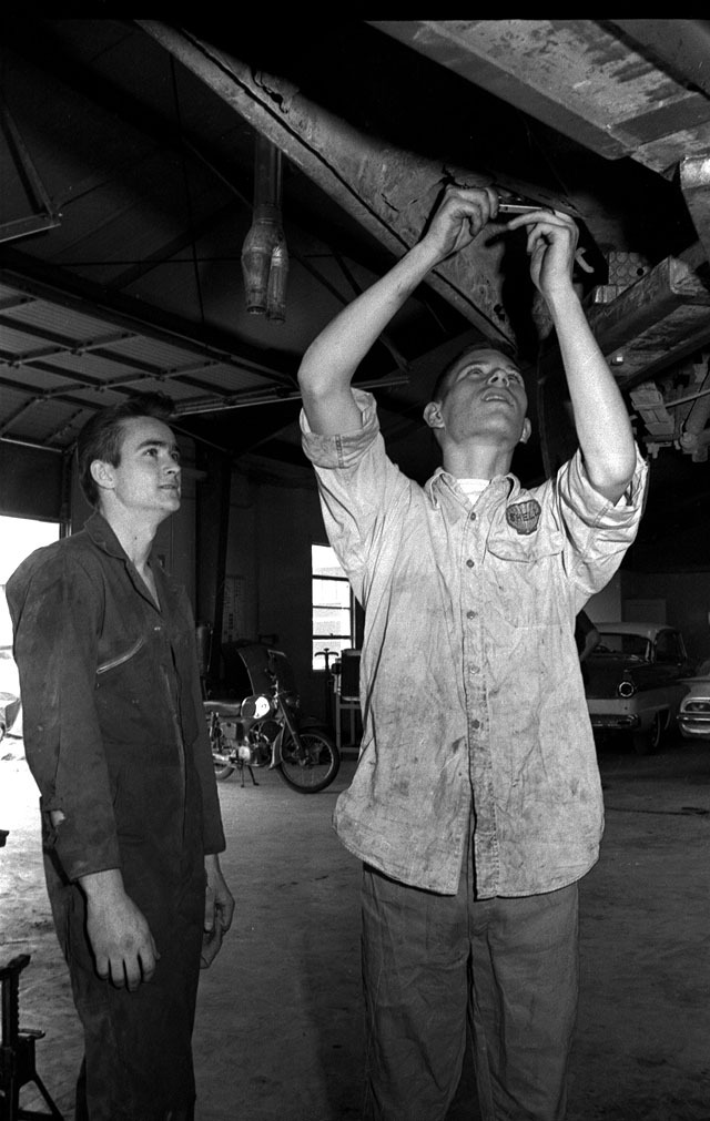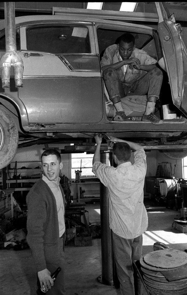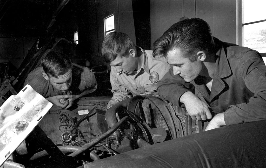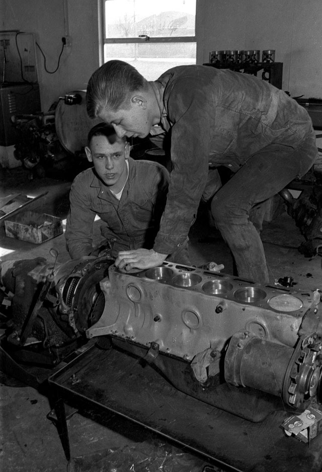 These are some GREAT pictures from the 60’s!!!!! I remember that one valve grinding machine and there’s Mr McNeely helping a student. the others looked like woodworking class but really GREAT MEMORIES and PHOTOS!!!!!!!!