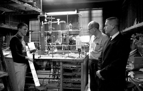 My was not a good chemistry student, however, I enjoyed his classes. When he would say, “Listen up troops”, and hit that meter stick on the desk, I would jump. I saw one or two of those sticks shatter. I remember being in class once when someone disposed of some kind of acid into the wastebasket and started a lot of smoke and stink. I remember an assembly at which he was awarded some kind of medal which he earned during his military days for doing some kind of repair in the air. My memory isn’t what it used to be, but I believe it was him.