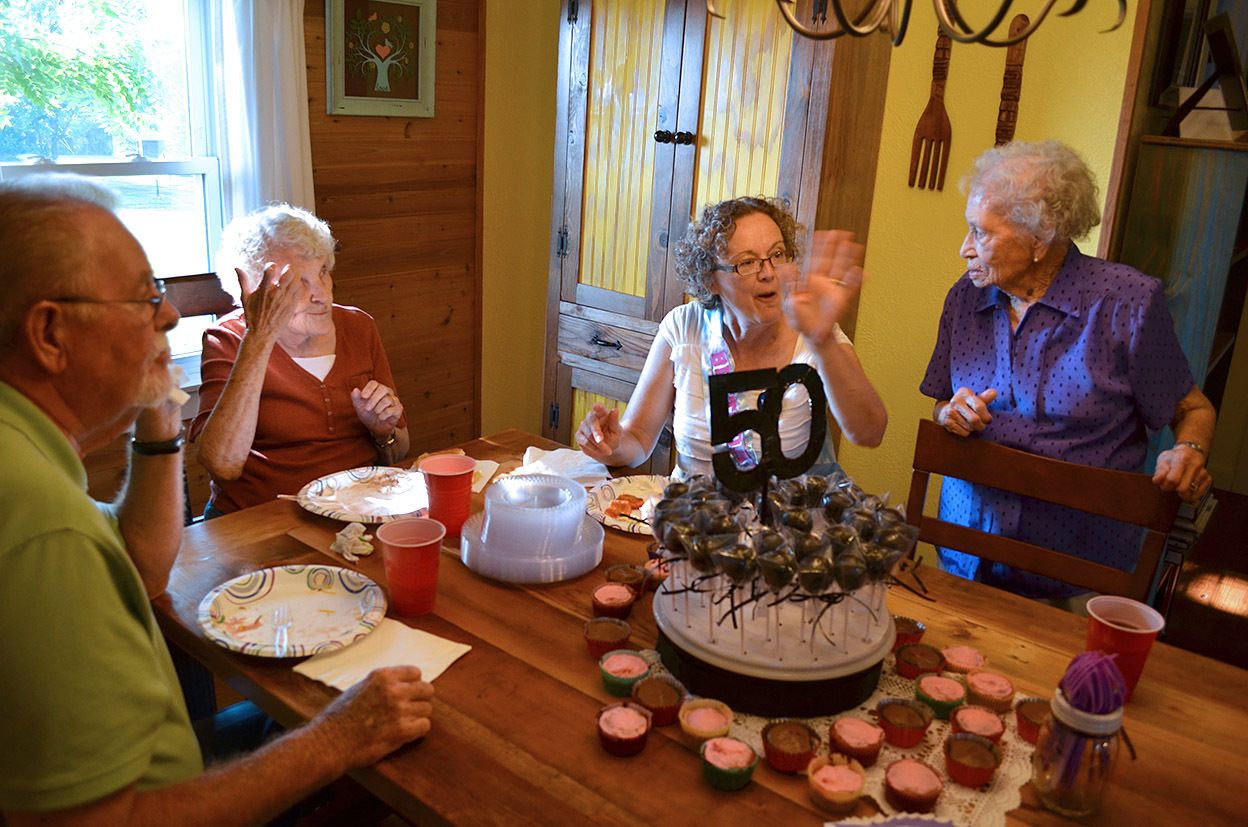 Bill stopped by Friday to invite Mother to Rhonda’s 50th birthday party on Saturday. I’m not sure if he used the phrase, “if you can make it up the hill,” but that would have insured that she would attend.