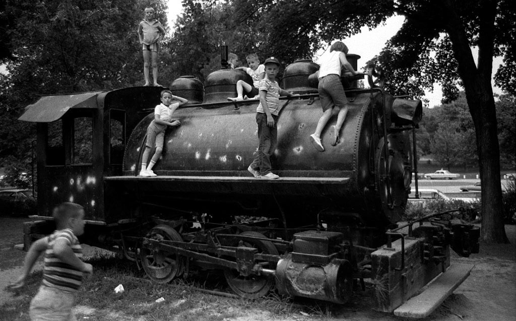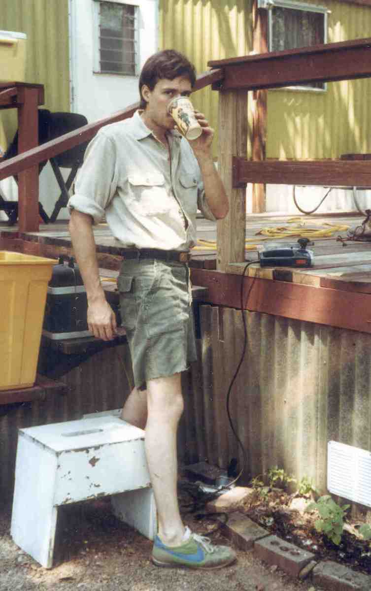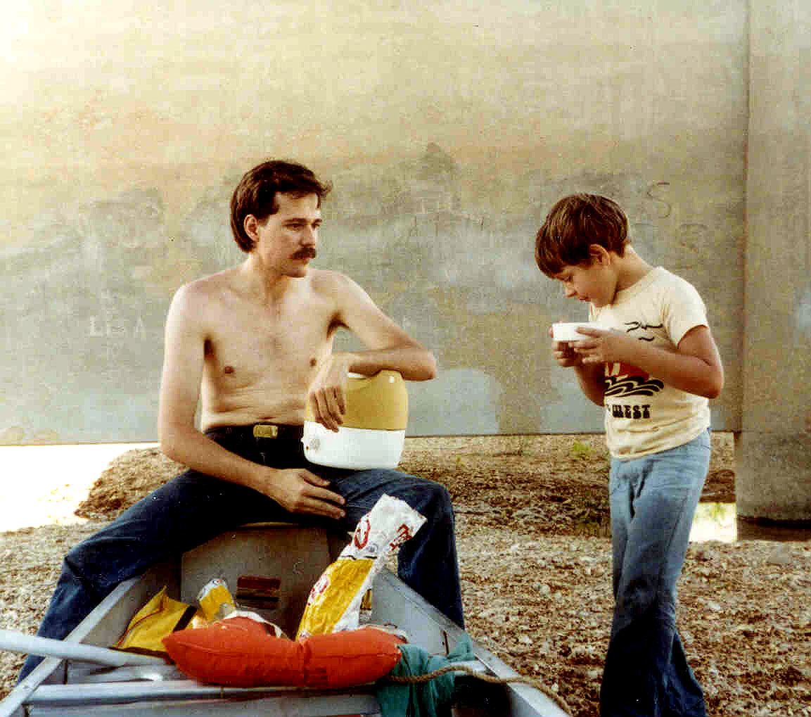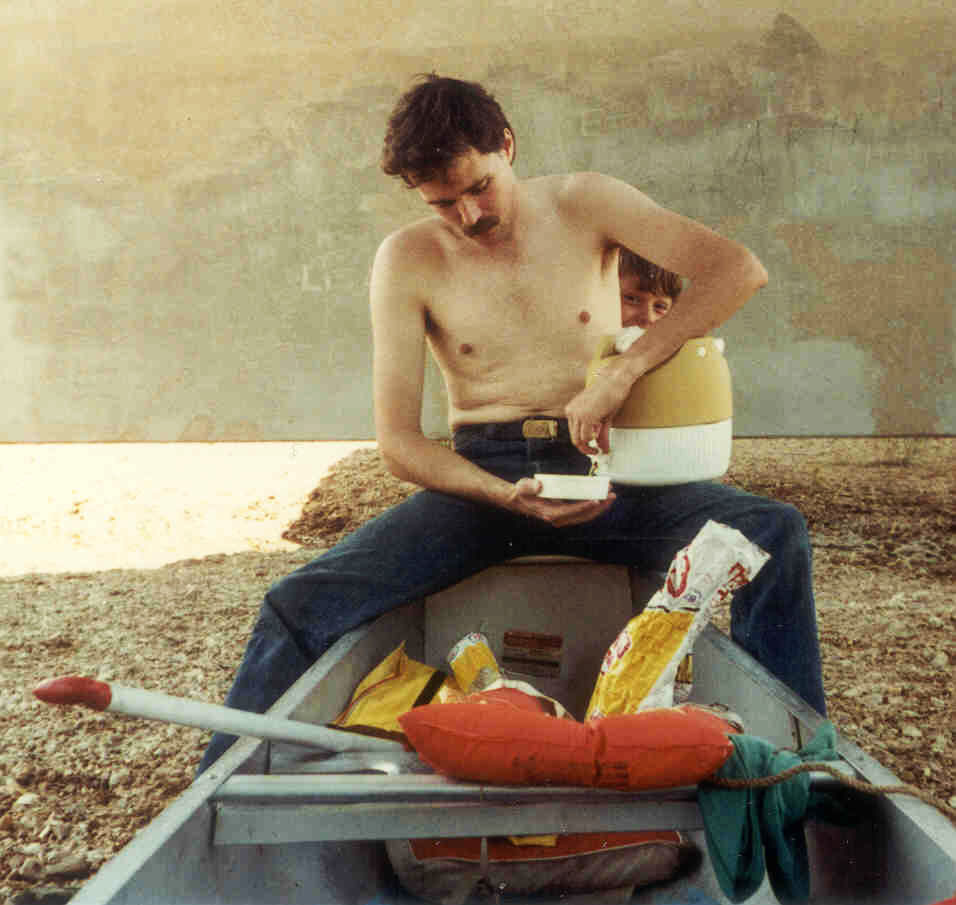 When the next 100-year flood came along in 1993, Mark and I rented a canoe to check out what the water was like in the main mechanic’s shed. We could barely make it under the door. I went in first, then Mark slid the canoe in. I was perched atop some storage cabinets while he was looking none too comfortable, particularly after I pointed out that he might represent high ground to any snakes around.