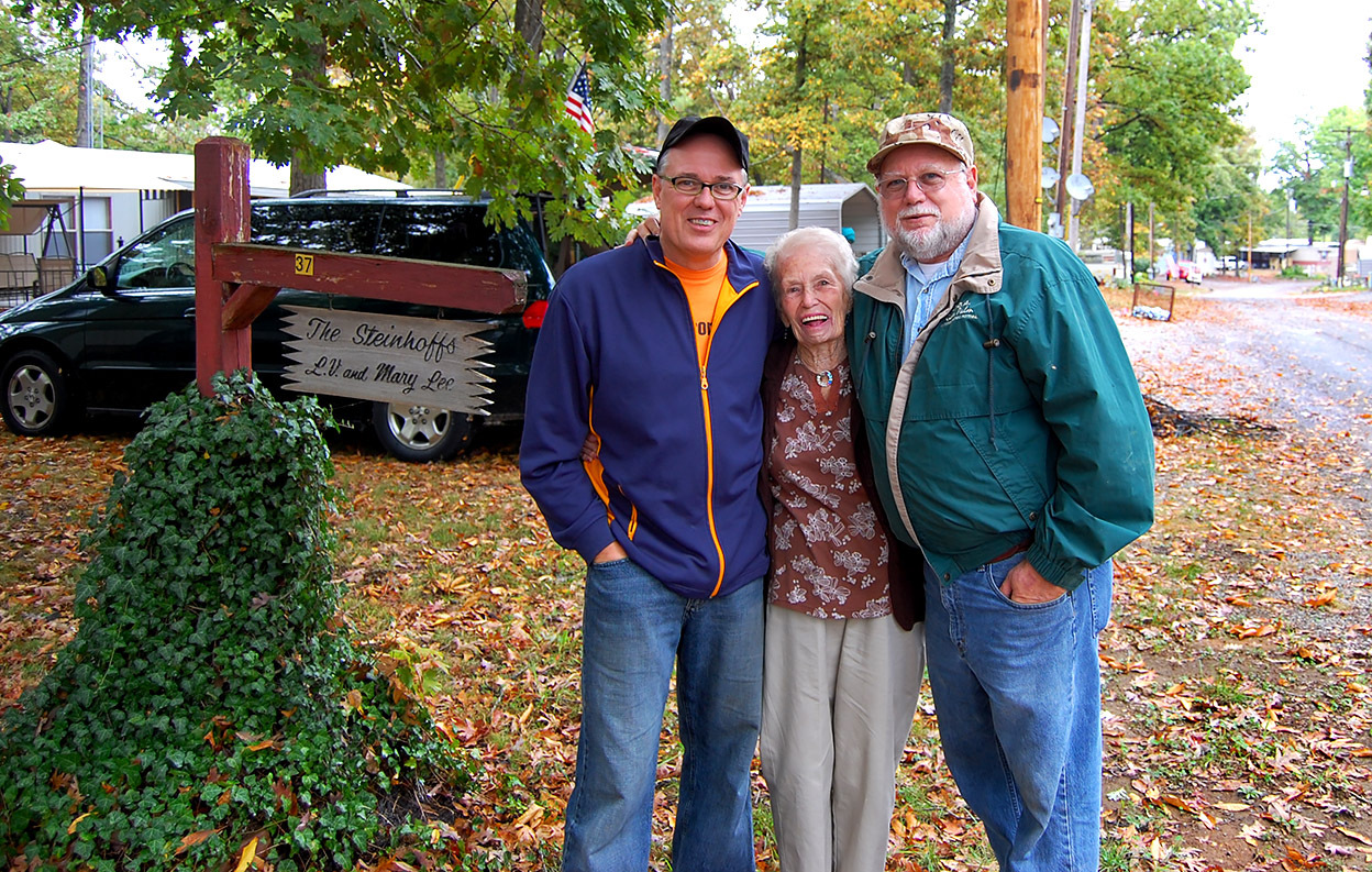 The last thing we did before hitting the road for Florida, Texas, South Carolina and Missouri was to take a Steinhoff group photo. Mark’s neighbors and next-to-family Wally and Deeds snuck in on the right.