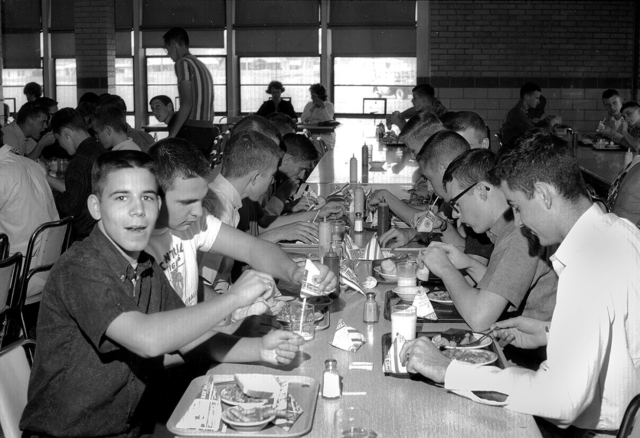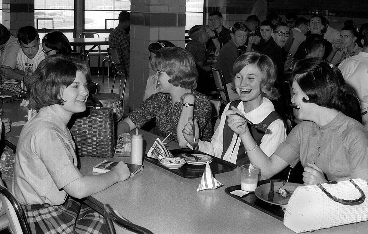 It’s fun to look at the faces in Central’s cafeteria in 1964, but it’s more fascinating to look at the variety of food on the trays.