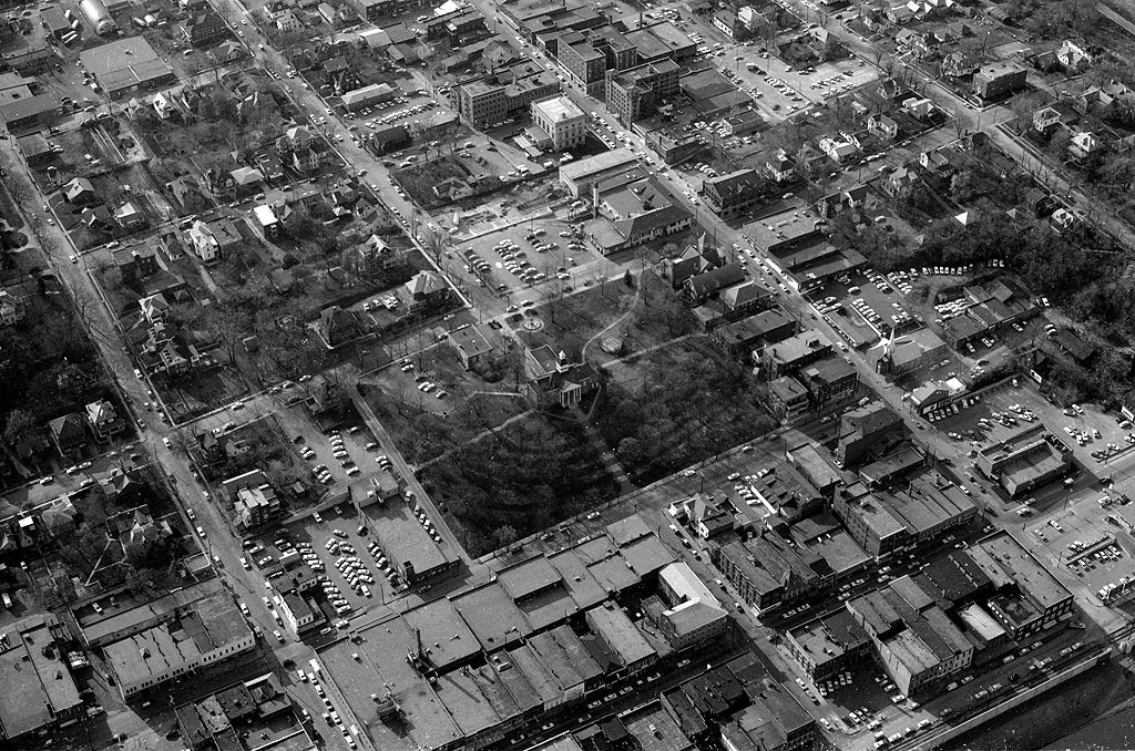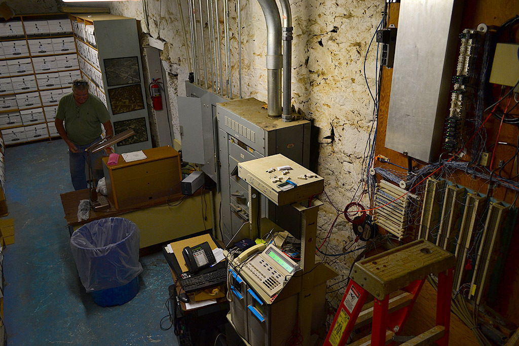 The basement is semi-finished in one area and used for record storage, phone and networks equipment, Christmas decorations, miscellaneous junk and three framed aerial photographs, one of which was of Pfisters and Central High School in the early 1950s.
