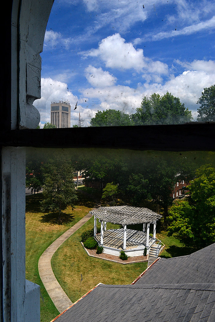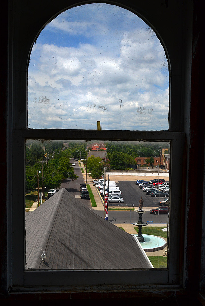 The stairway to the dome felt solid, but it got narrower and more twisty the higher I walked. This is the level where I shot photos of the courthouse grounds and surrounding neighborhood.