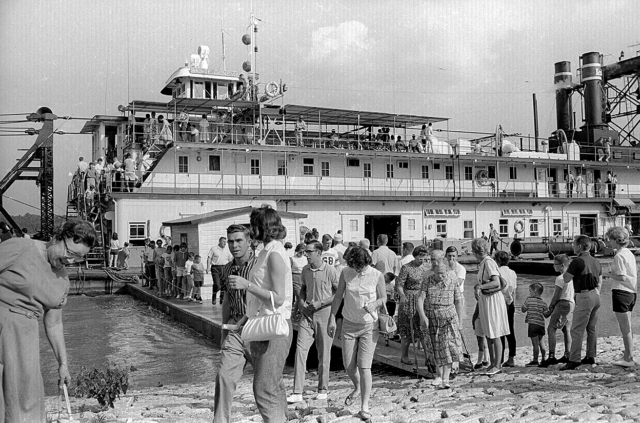 Huge crowds turned out to tour the Corps of Engineers Dredge Ste. Genevieve in the middle 1960s. I tried to find the story associated with the photos, but came up blank. The “Genny,” as she was called by the men who worked aboard her for more than half a century, was built in 1932 by Dravo Corp. at Neville Island in the Ohio River at Pittsburgh.