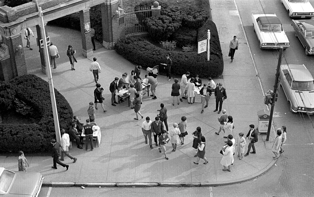 Curator Jessica and I had talked about that. Athens’ uptown shopping area, bars and restaurants are adjacent to campus and everything is within walking distance, so a lot of students don’t have cars. It’s also a relatively isolated area not close to any major population centers. A lot of students come from places like Cleveland and Akron that are too far away for a casual weekend commute, so they hang out in town and grow close to it.