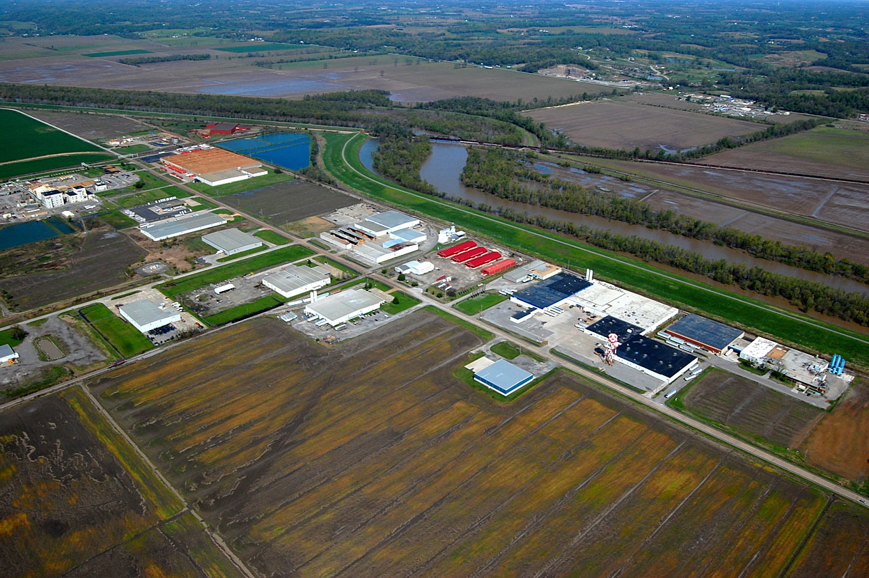 When I was flying aerials in November 2010, I noticed the Bloymeyer roundabout joining Nash Road, Hwy 25 and Hwy 77 had been completed. In this photo, Nash Road comes in from the top left. Hwy 25 from Jackson and Dutchtown is on the lower left and then turns to the right to go to Advance and Bloomfield. Hwy 77, at the top right, goes to Chaffee.