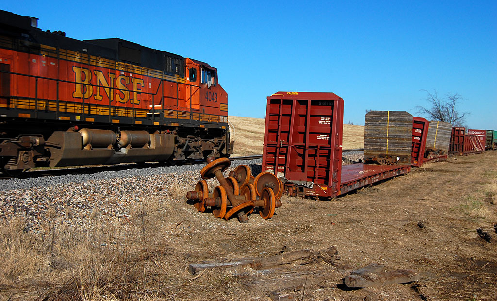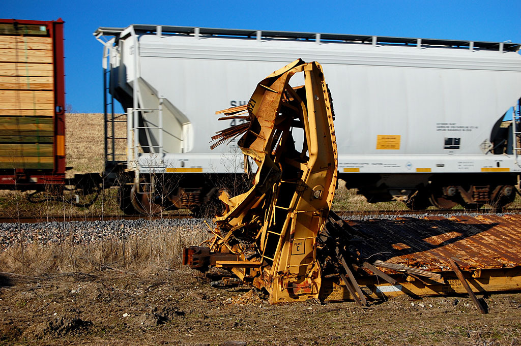 In early October, 15 empty cars on a Burlington Northern Santa Fe train derailed on the tracks that parallel Nash Road. Nobody was injured and no hazardous chemicals were involved, The Missourian reported. I include these photos only because you could see them from Nash Road and because Keith Robinson, a railroad buff, is a regular reader.