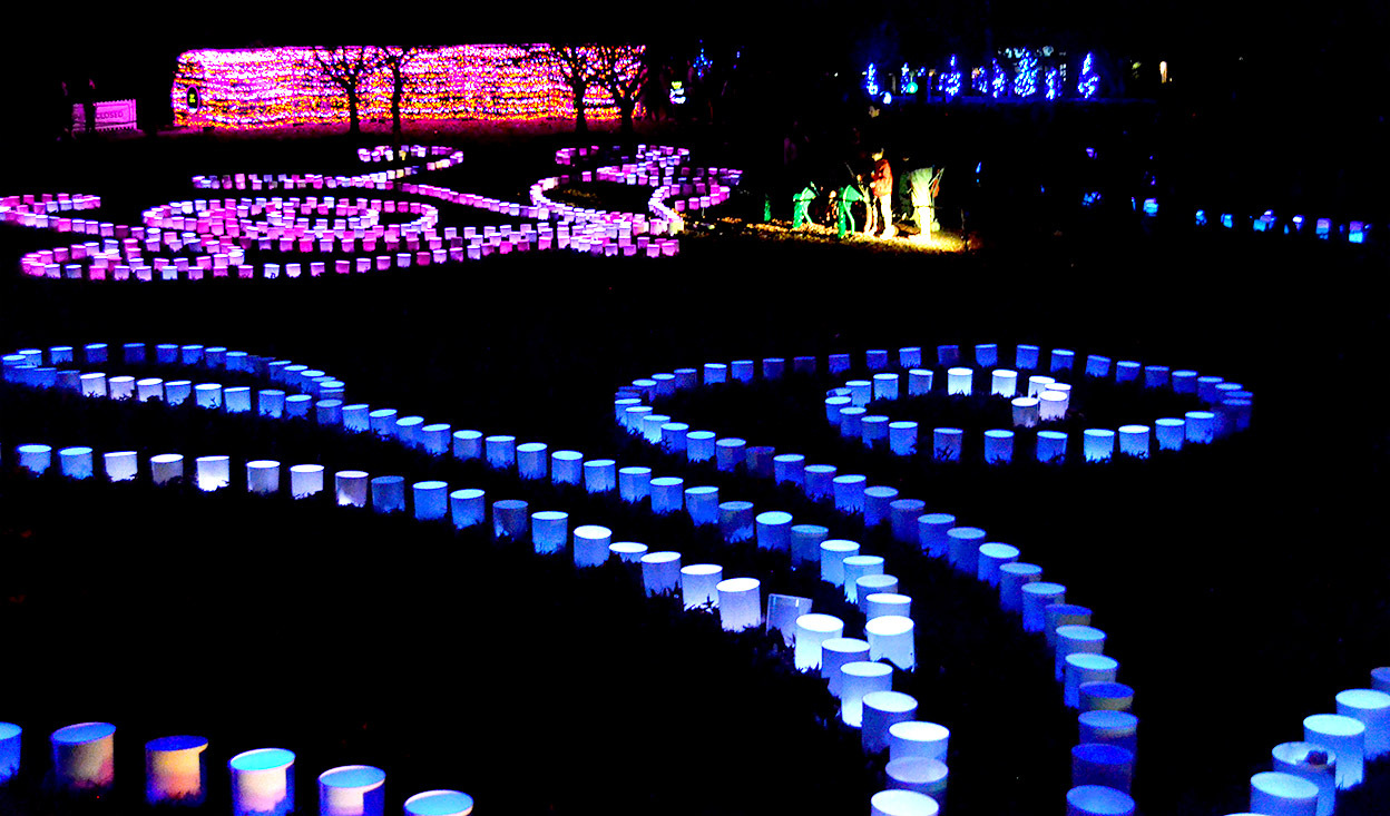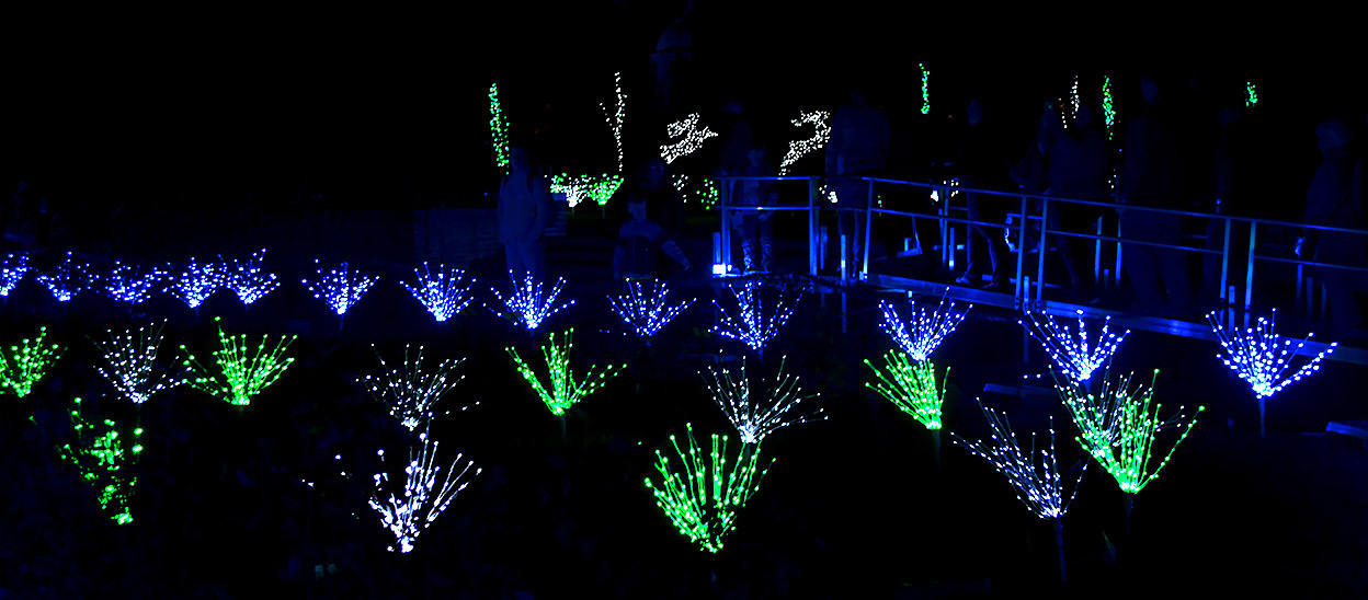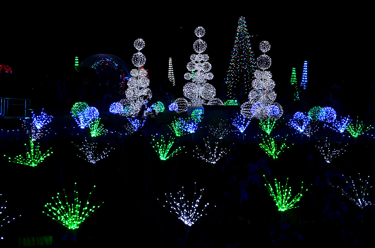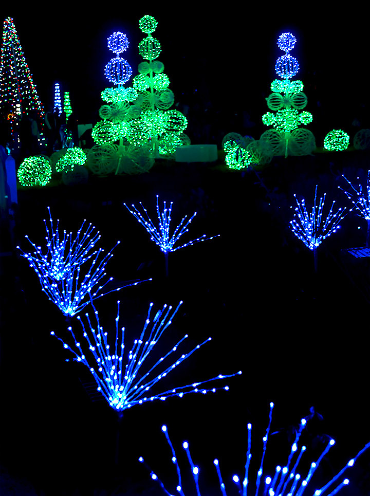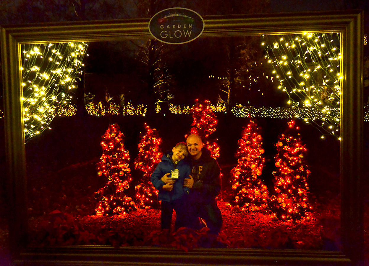 When Son Adam and Grandson Elliot visited St. Louis, it was convenient for us to see the Missouri Botanical Garden Glow because Brother Mark and his wife, Robin, live on Flora Place, right at the edge of the park. It was only about a two-block walk to get to the entrance of the Glow, which promised a million lights.