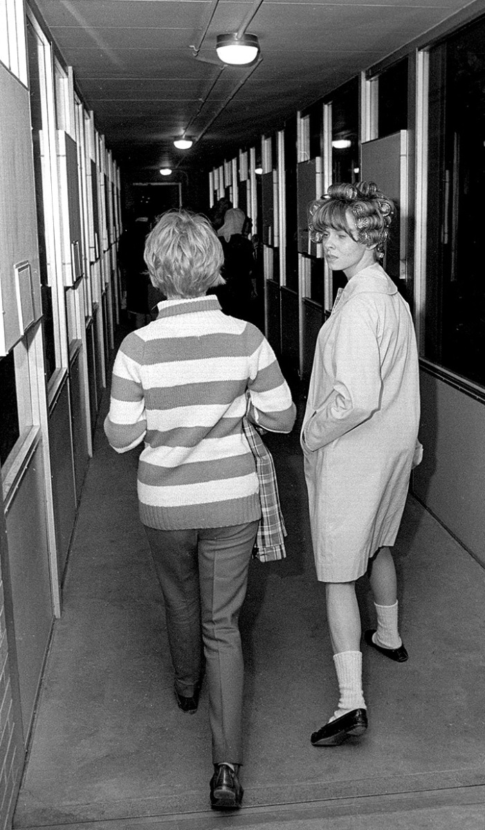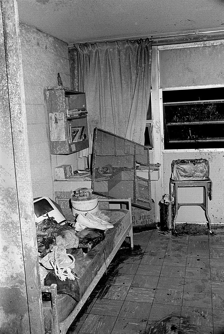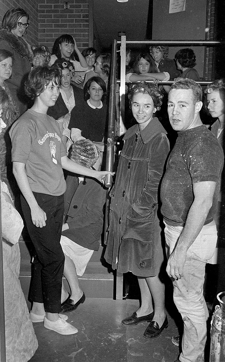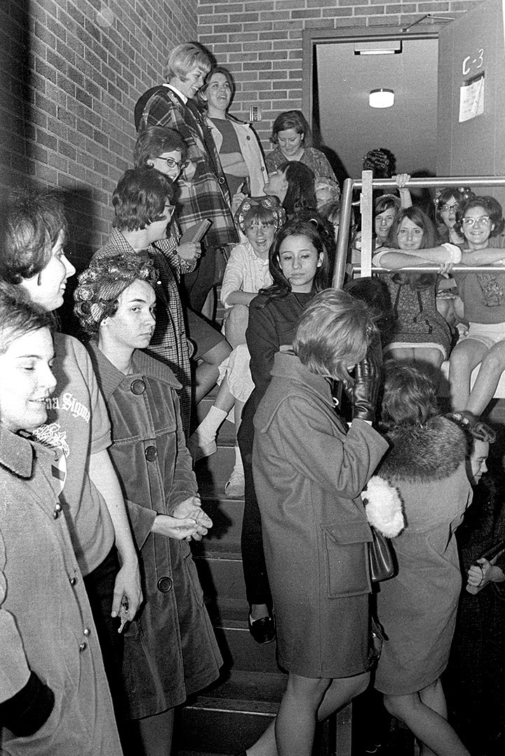 The Missourian’s January 16, 1967, front page lead story was “Cake Fires Girls’ Dorm,” with three of my photos. Clothing and bedding were destroyed and smoke and fire damage were extensive when fire enveloped a room in Dearmont Quadrangle, women’s residence hall at State College, Saturday night (January 14).