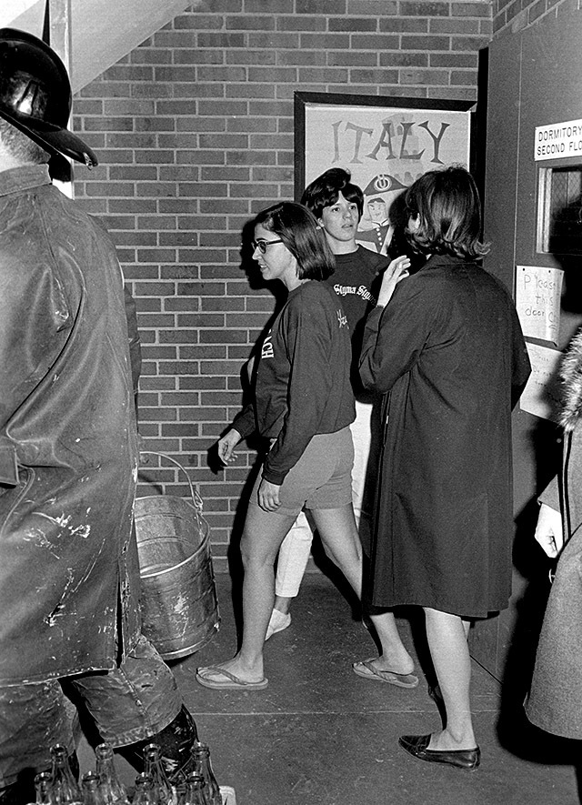 Girls living in B and C wings, in pajamas and pincurlers, were evacuated, but later returned to their rooms.