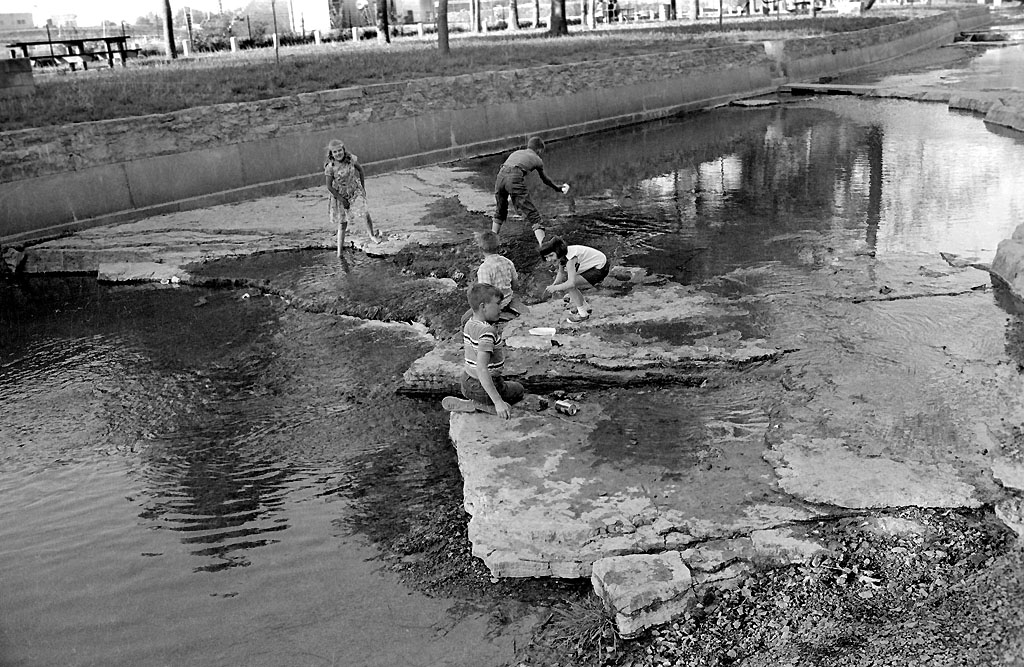Earlier in the day, children splashed in the water while the traffic signal kept flashing red, yellow and green, but no traffic was passing. One kid was quoted in the paper as saying, “This is the first time I’ve ever been in a pool with traffic lights in it.”