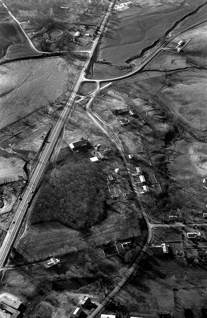 Our house was built in 1956, long before Kurre Lane was extended and longer yet before Station #4 was built, as you can see in this aerial photo I took in 1966. Our house was the first of the three houses going down the hill from Kurre, the street running horizontally at the bottom of the photo.