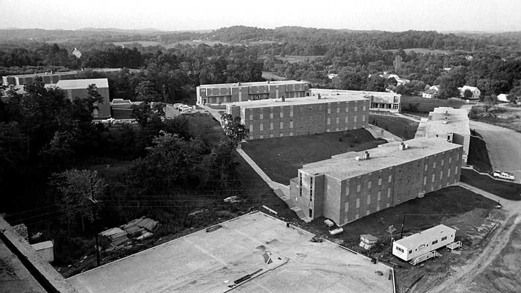 Houck Field House, Academic Hall, Kent Library and the high-rise dorms all show up prominently. Parking has replaced some of the homes and businesses along Broadway in front of the Field House. (Click on the photo to make it larger. It has some cool detail.)