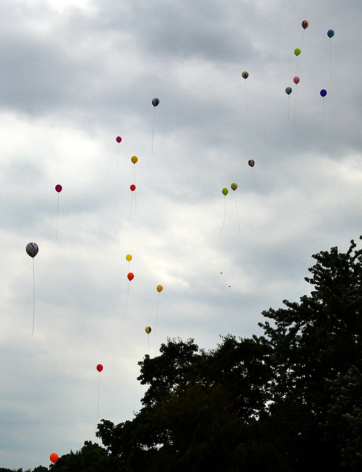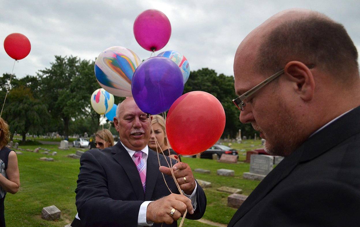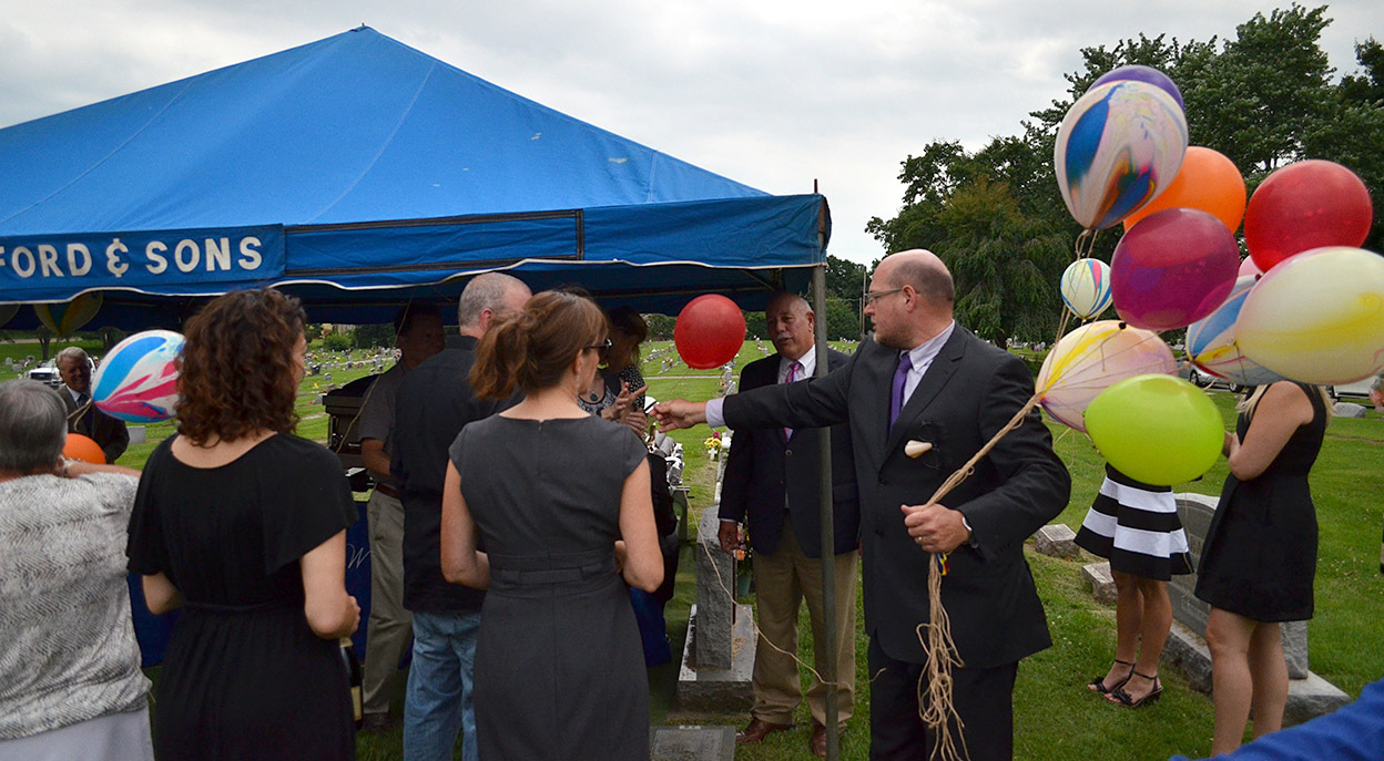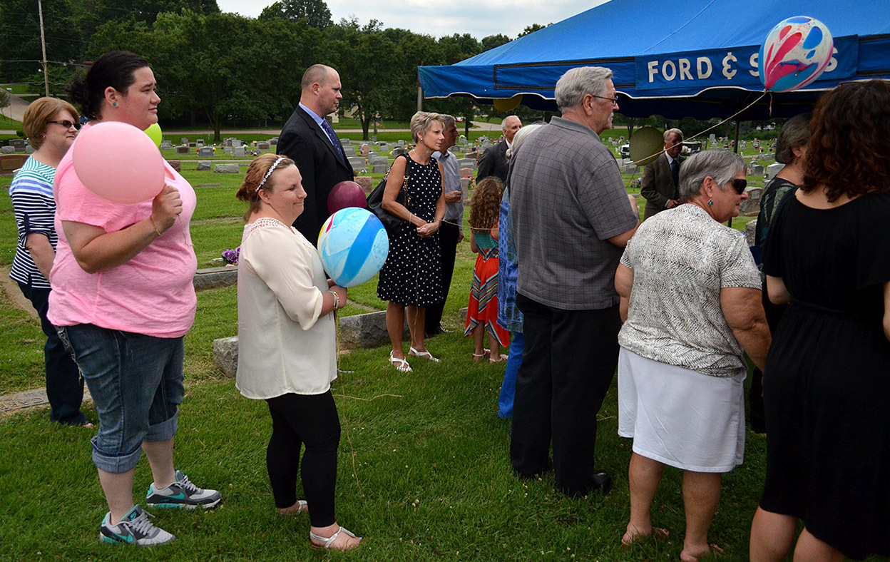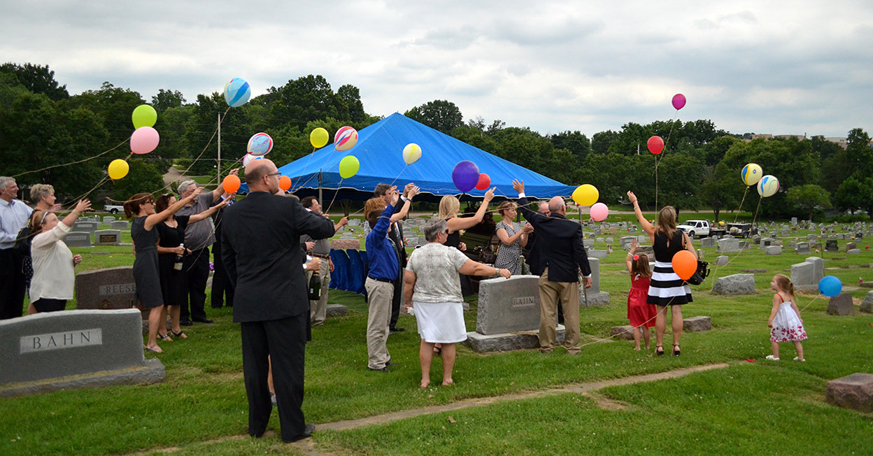 Mother always like to watch to car dealer over on Kingshighway cut loose the balloons tied to its cars, so she wanted a balloon release at the cemetery.
