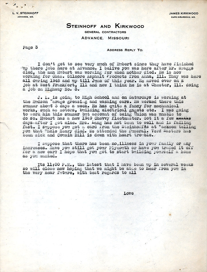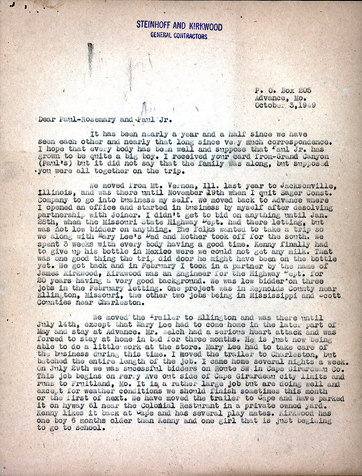 1949 letter to his brother, Paul Steinhoff