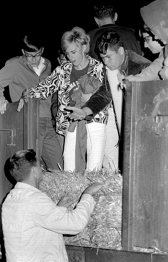 This photo ran in the March 1 Missourian with the caption, “Fan of the Year: You see him at every sporting event, whether it be baseball, basketball, football, track, or even swimming. It makes no difference whether it’s high school, college, or junior high. Ron Smith (shown holding radio), a junior at Central High School, was recently presented the “fan of the year” award by State College’s Varsity Club.”