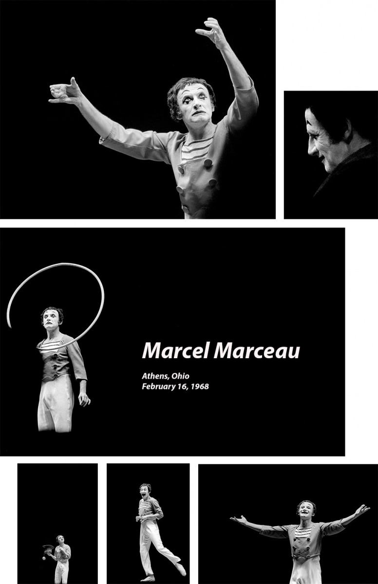 One of the advantages of working for The Ohio University Post and The Athens Messenger was access to press credentials to cover some of the best performers of the time. I was fortunate enough to photograph Marcel Marceau when he performed at Memorial Auditorium on February 16, 1968 (if the negative sleeve is right).