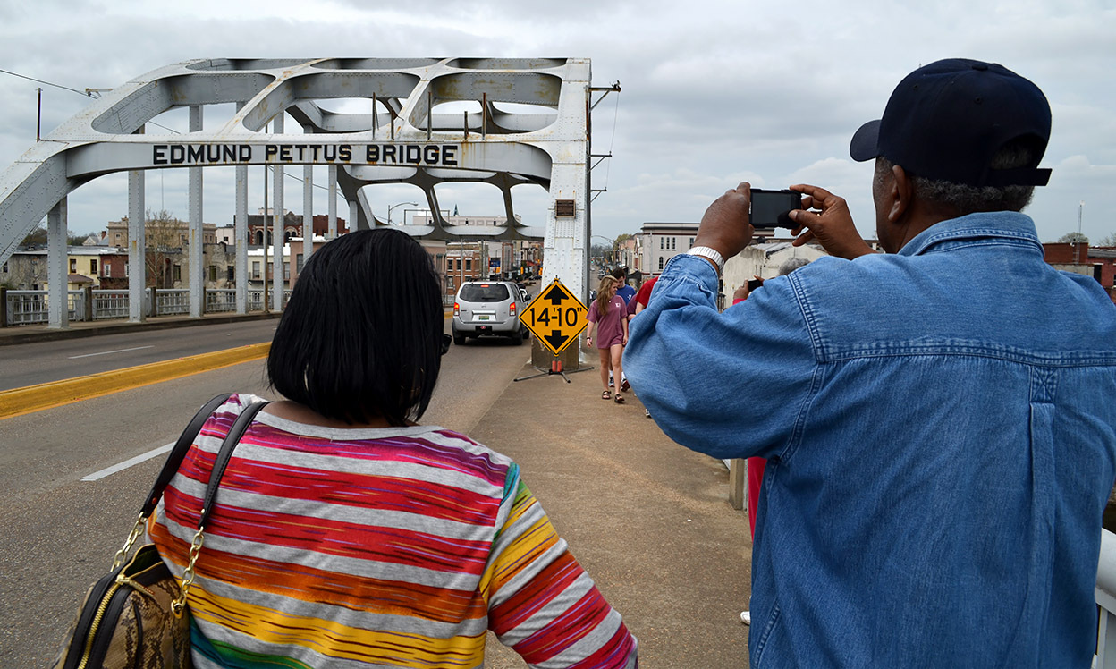 I walked about halfway down the bridge, then turned back to head to the car. I hadn’t gone far, when suddenly I felt myself transported back half a century. I could hear the crowd behind me singing, talking, laughing. Spirits were high. They were marching for their freedom.