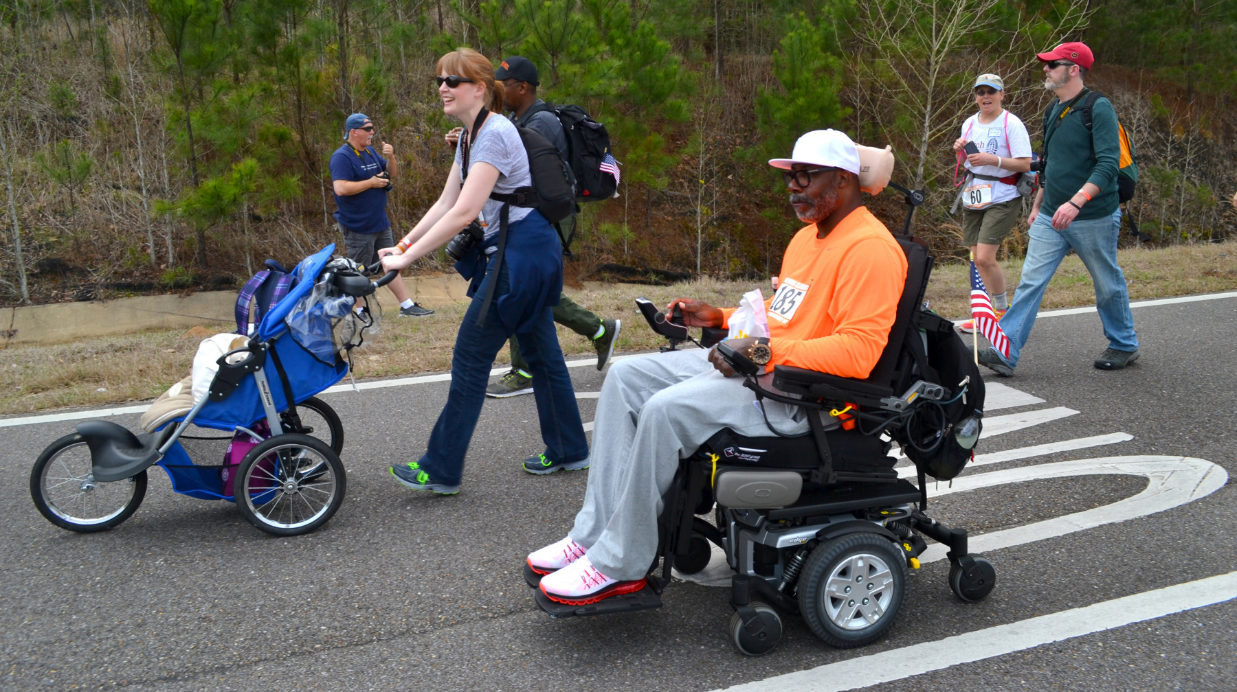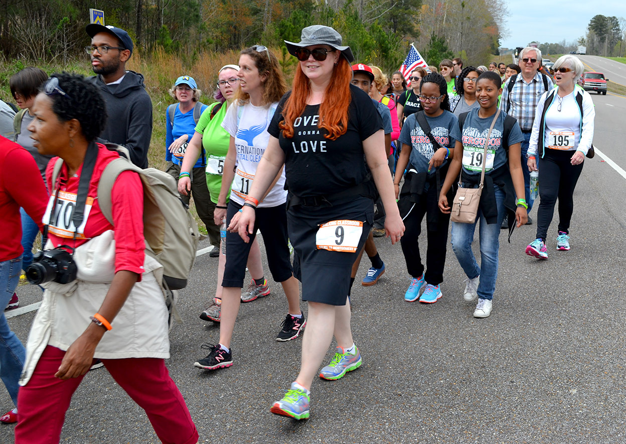 The group was made up of a mixture of ages and races, ranging from a babe in arms to folks who were probably in their 70s. Sometimes singing would break out, other times the walkers were just plugging away.