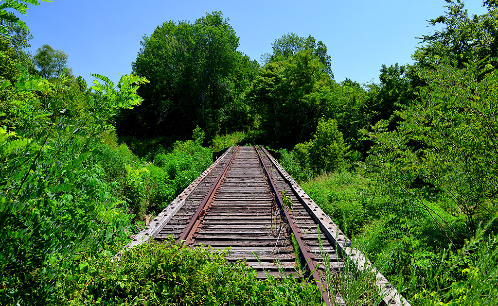 The further I walked south, though, the more I became sure I wouldn’t want to be on a train crossing the creek. What’s that dip up ahead?
